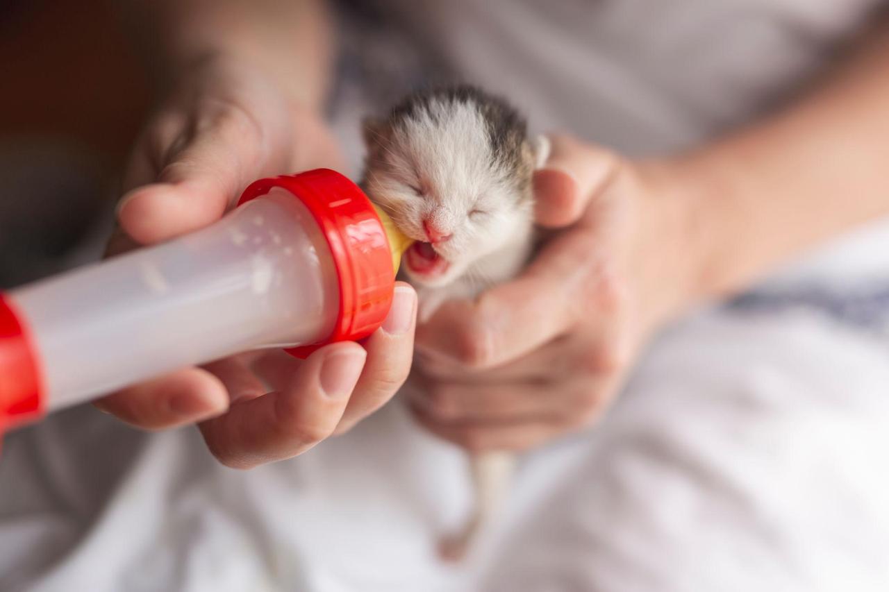 생후 몇 주 되지 않은 아기 고양이는 스스로 음식을 먹을 수 없기 때문에 전용 분유와 젖병 수유가 필요합니다.
